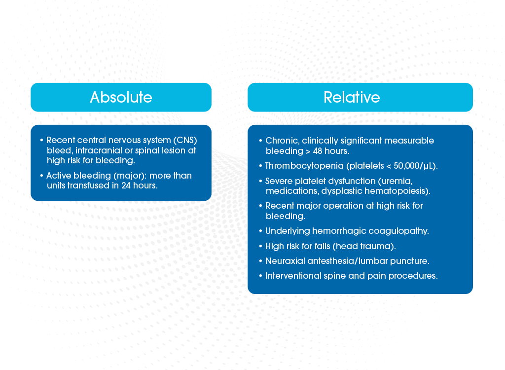 El riesgo de sangrado de los pacientes oncológicos está elevado de forma global. Si analizamos los factores de riesgo y las contraindicaciones de las diferentes guías clínicas (Figura 15) y (Figura 16), podemos observar que no se cumple ninguno de los criterios de contraindicación para la tromboprofilaxis en este paciente. Por lo que podemos considerar que no es un paciente de alto riesgo de sangrado y se podría plantear tromboprofilaxis tanto en el ámbito hospitalario como ambulatorio.