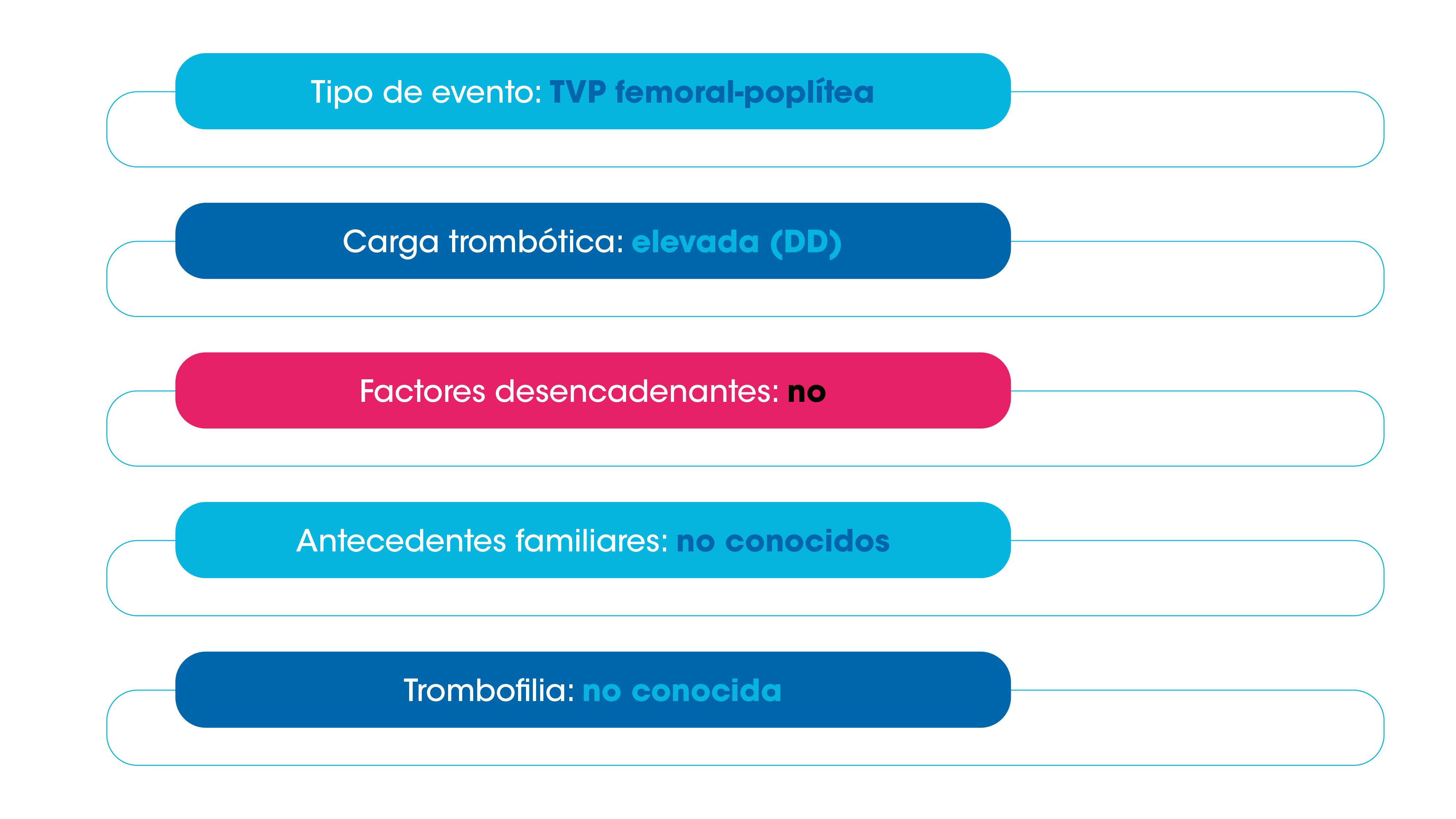 - Diagnosticada hace 1 mes en urgencias de TVP femoropoplítea izquierda, acude a nuestra consulta para la valoración de tratamiento anticoagulante, planificación terapéutica y completar el estudio (Figura 1).