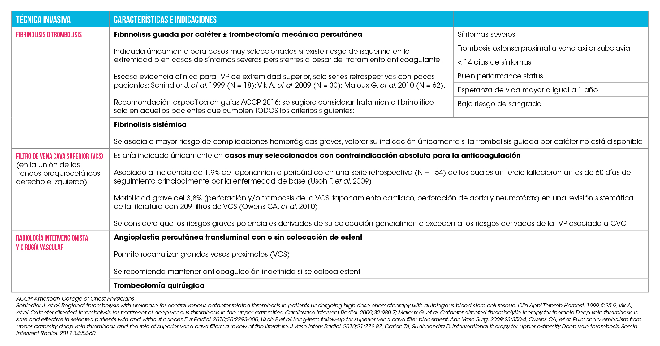 Los pacientes con TVP asociada a catéter no se incluyeron en los ensayos clínicos en que se comparó el tratamiento a largo plazo (hasta 6 meses) con HBPM frente a HBPM seguida de dicumarínicos. Tampoco se incluyeron en los ensayos clínicos Hokusai Cancer, ADAM-VTE, Select-D y Caravaggio publicados posteriormente en los que se compara la eficacia y la seguridad de HBPM frente a ACOD (edoxabán, apixabán, rivaroxabán) para los pacientes con trombosis asociada al cáncer [18].